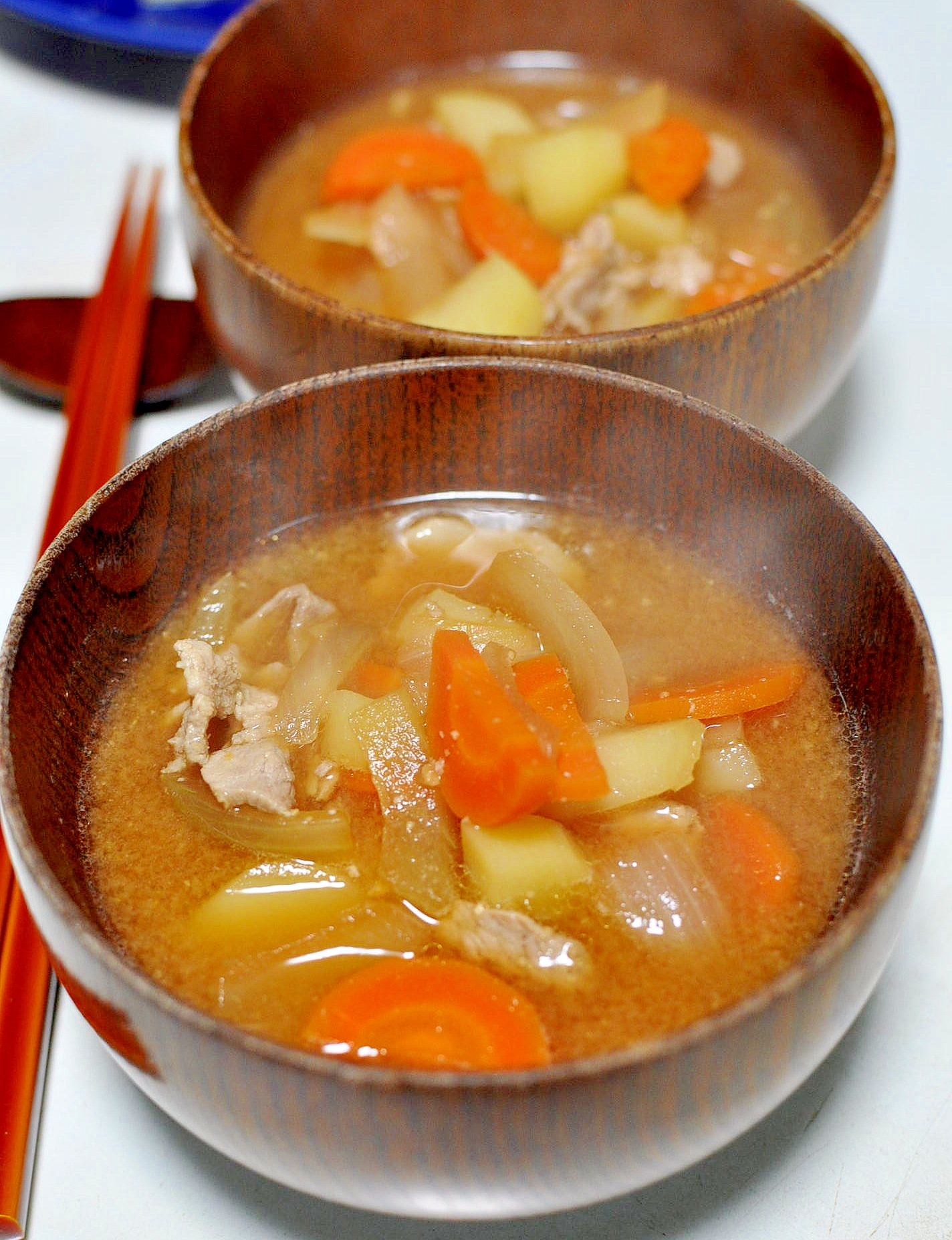 じゃが芋 玉ねぎ 人参で 豚汁風みそ汁 レシピ 作り方 By ねこすけ 楽天レシピ