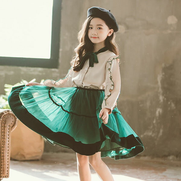 韓国子供服 2点セット 長袖 シャツ ふんわりスカート 女の子 春 夏 秋 かわいい おしゃれ セットアップ 発表会 結婚式 フォーマル 七五三 卒園式 入園式 入学式 110 1 130 140 150 160cmのおすすめ キテミヨ Kitemiyo